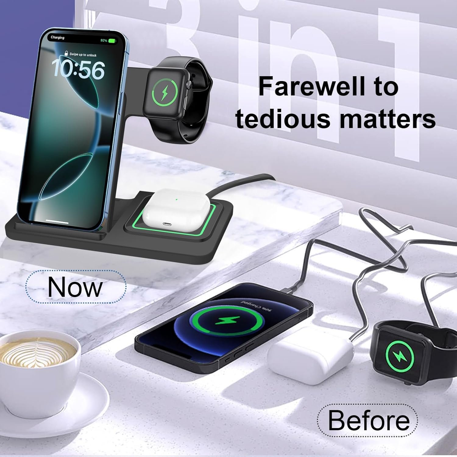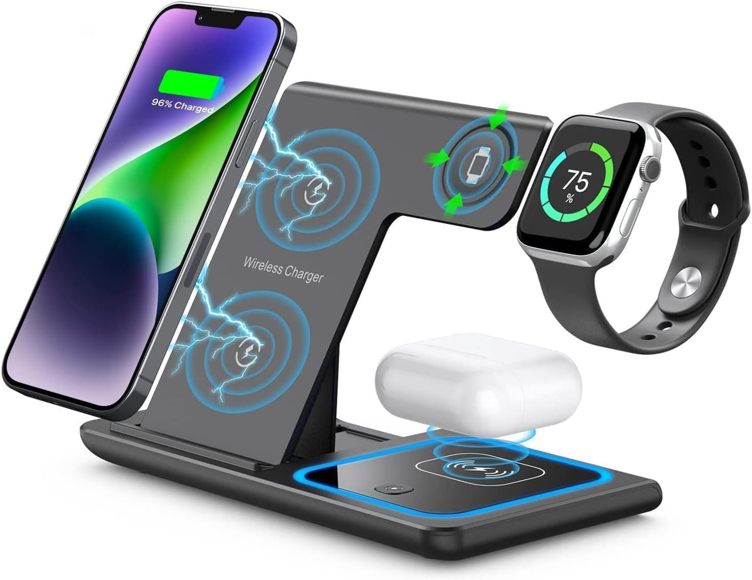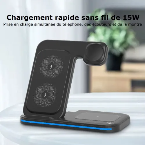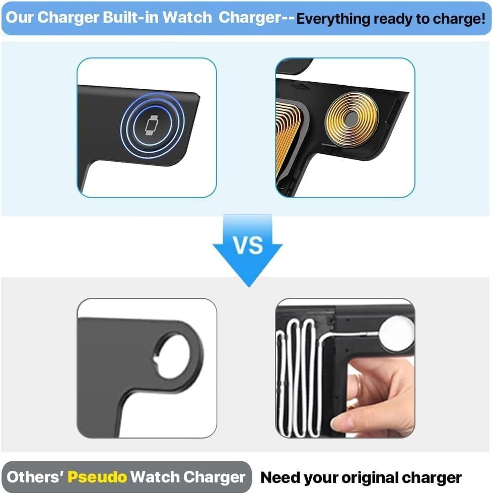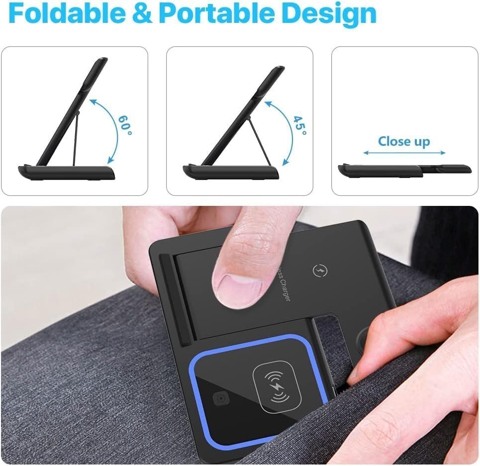 ⚡ Kituo cha Kuchaji Bila Waya cha Kukunjwa cha 3-katika-1 – Chaja ya Haraka ya 15W kwa Simu, Saa na Vifaa vya Kusikilizia Masikioni