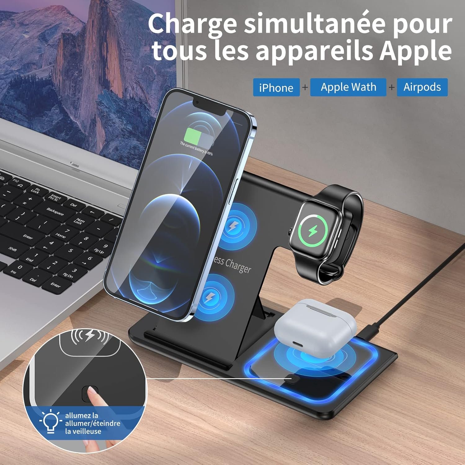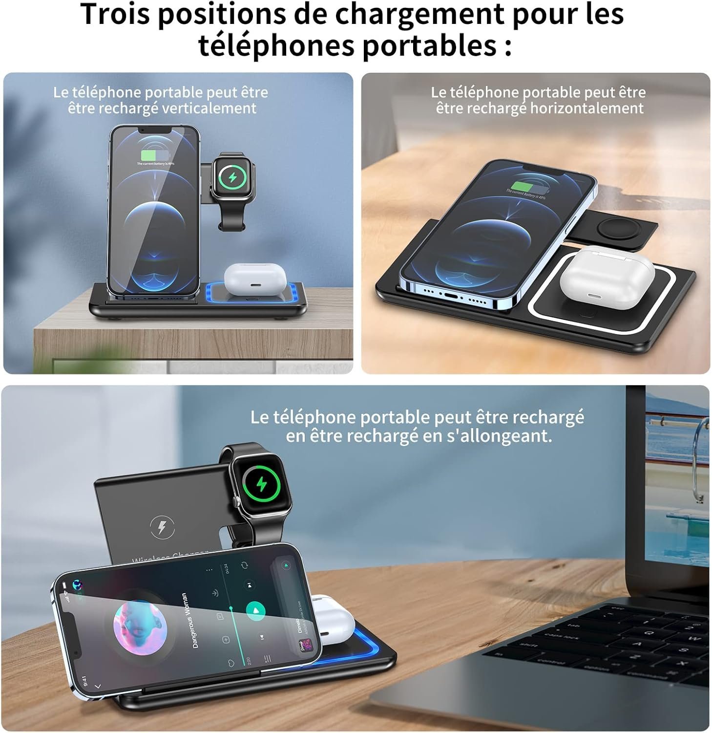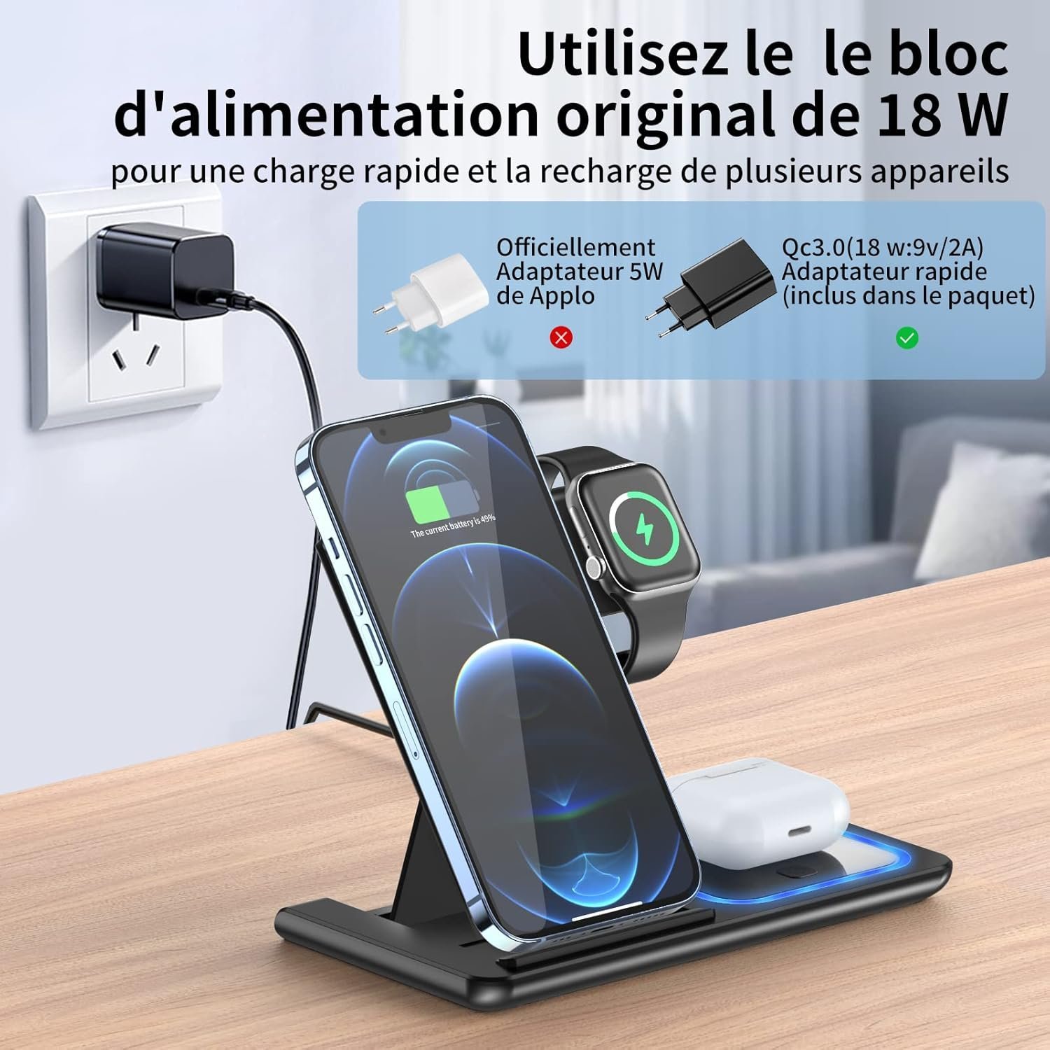 ⚡ Kituo cha Kuchaji Bila Waya cha Kukunjwa cha 3-katika-1 – Chaja ya Haraka ya 15W kwa Simu, Saa na Vifaa vya Kusikilizia Masikioni
