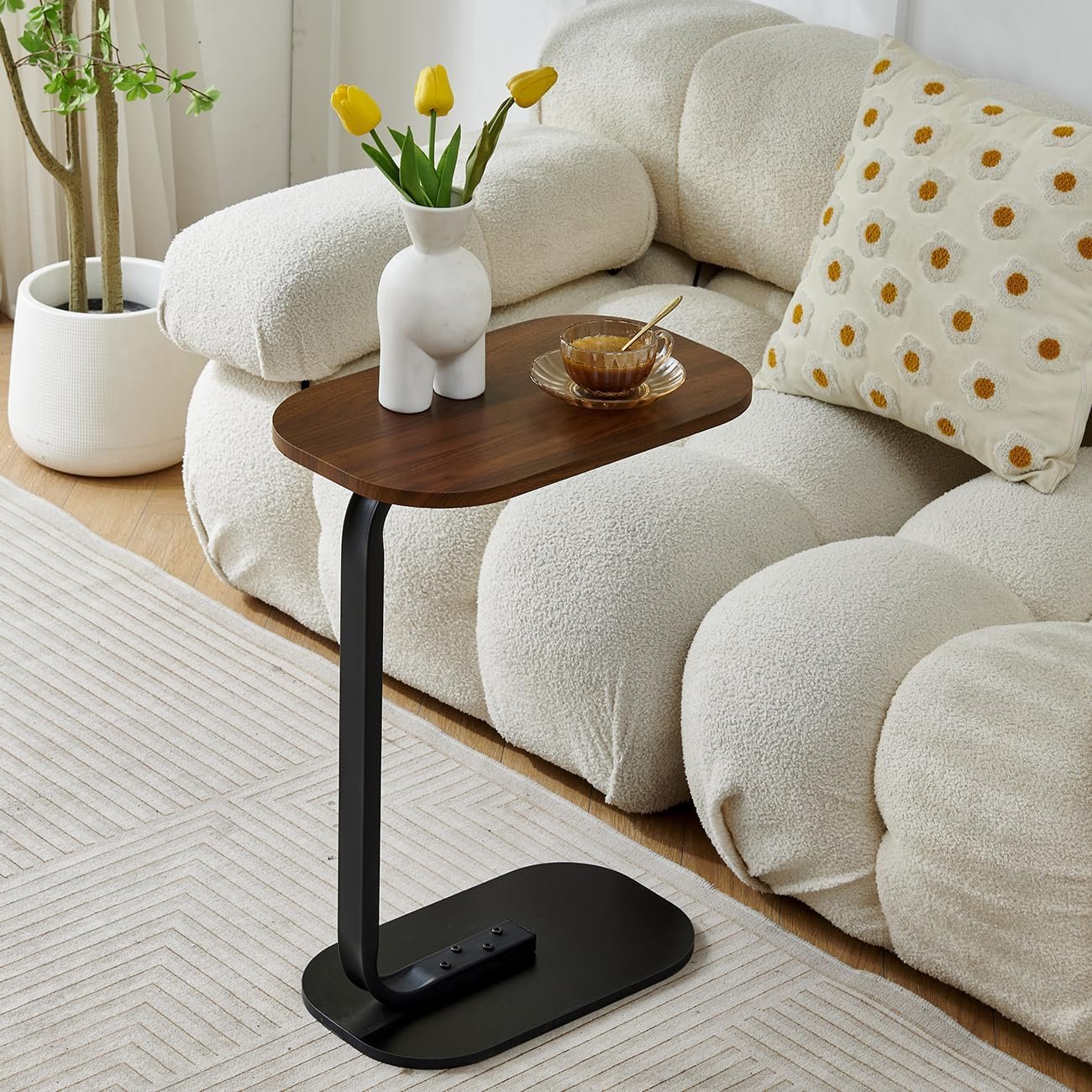 Hii ni meza ya pembeni inayoweza kutumika kwa njia mbalimbali ambayo inaweza kupata pembe inayofaa bila kujali mahali ilipo ndani ya nyumba. Muonekano rahisi wa mbao wenye umbile maridadi, unaochanganyika kikamilifu katika mitindo mbalimbali ya nyumbani! Iwe ni ya Nordic, minimalist ya kisasa, au ya zamani, inaweza kuendana kwa urahisi!