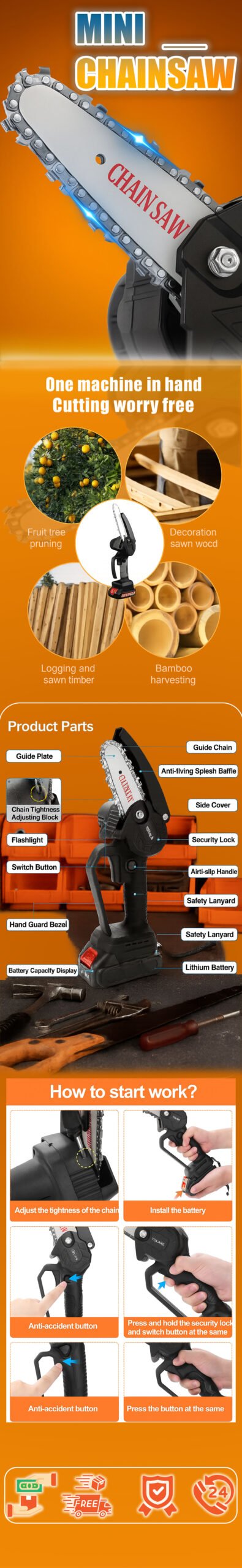 Msumeno wa Chainsaw Usio na Waya Ulioshikiliwa kwa Mkono | HandySaw Pro