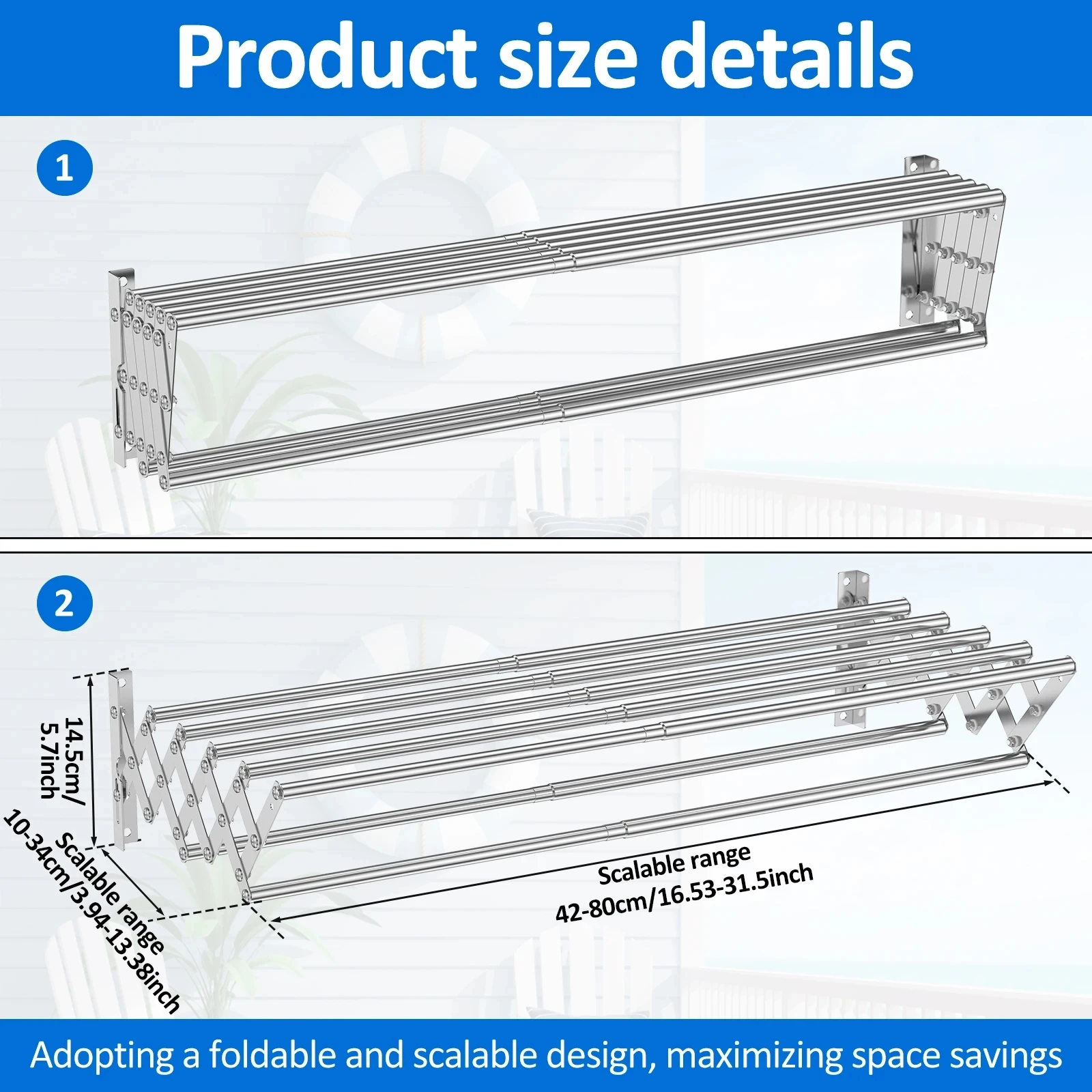 Picha inayoonyesha mabango ya uzuri wa ufungaji unapa nafasi za ndani na nje kwa usimamizi wa nguo. Uking’arisha bafuni au uani, bidhaa hii itabadilisha usimamizi wako wa nafasi kuwa wa kipekee! 🚿🏞️