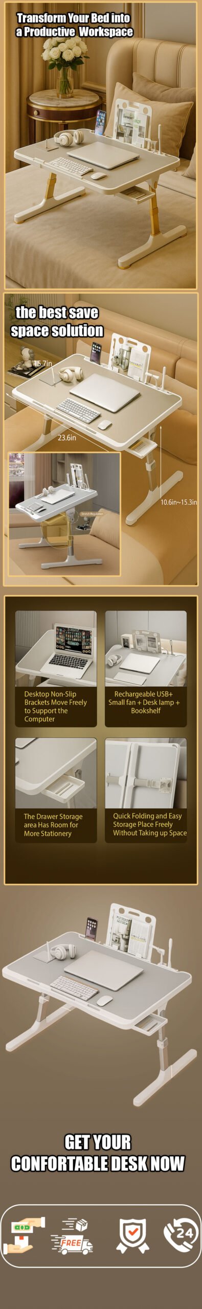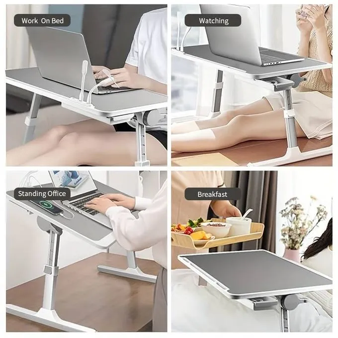 Dawati la Kompyuta Mpakato kwa ajili ya Kitanda, Meza ya Kitanda Inayoweza Kurekebishwa yenye Lango la Kuchaji la USB