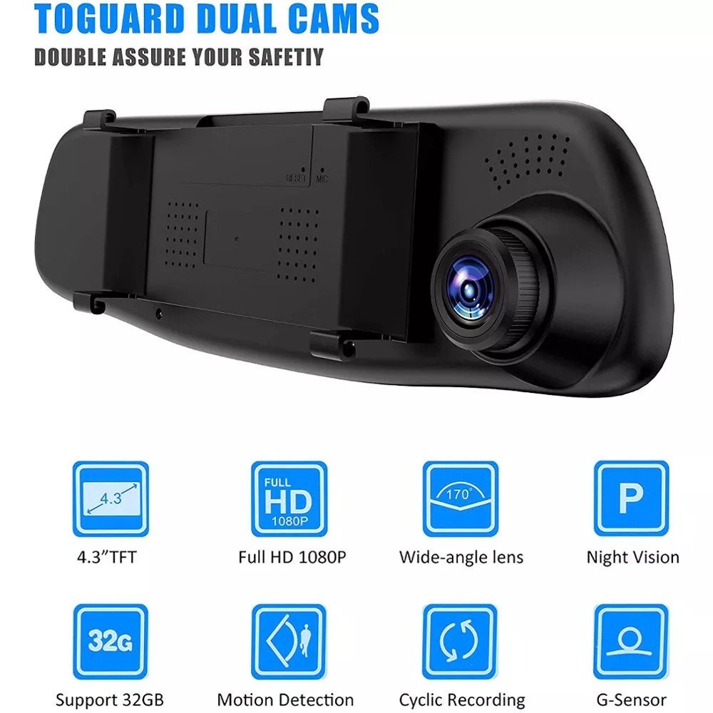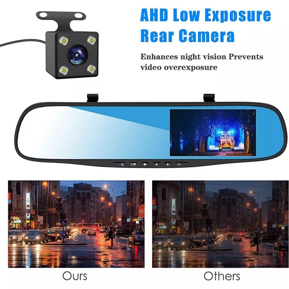 🚗 Kamera ya Kuona Nyuma & Dash Cam ya Kioo cha Inchi 4.3 – Rafiki wako wa Kuaminika Barabarani!