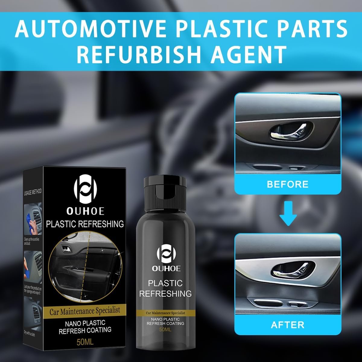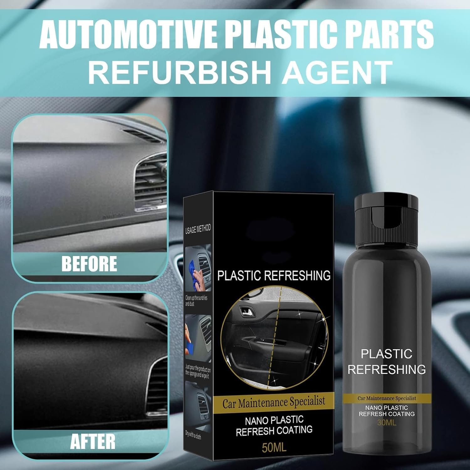 Huondoa mikwaruzo, madoa, na madoa yanayosababishwa na vumbi na kuzeeka, na kurejesha uso wa plastiki, mpira, na ngozi ili uonekane mpya.