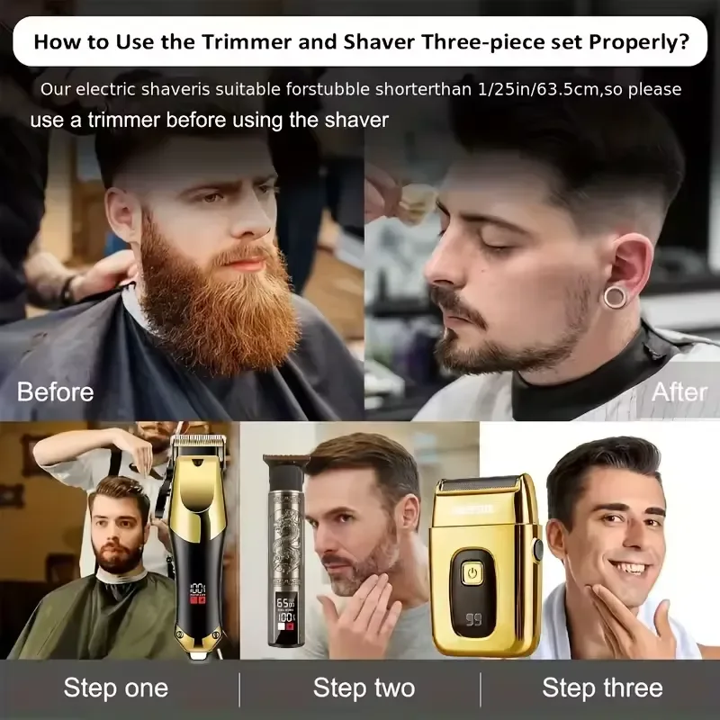 Seti ya Vikata Nywele Vinavyoweza Kuchajiwa kwa Wanaume – 3 kwa 1